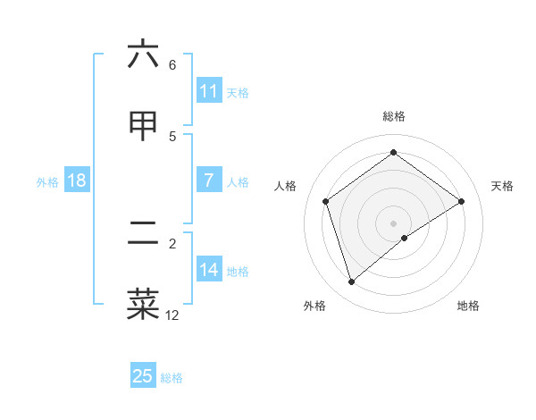 六甲 二菜さんを姓名の画数から五運を鑑定