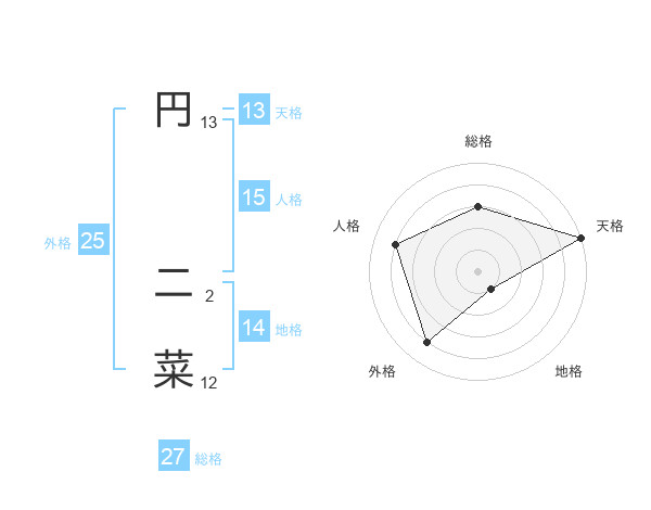 円 二菜さんの天格は13画の5点!