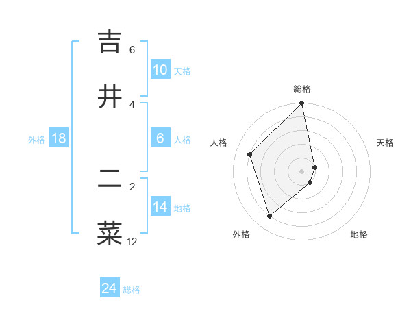 吉井 二菜さんの総格は24画の5点!