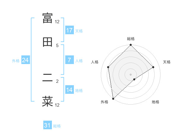 富田 二菜さんの総格は31画の5点!