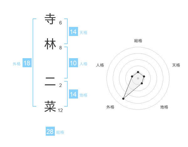 寺林 二菜さんの総格は28画の1点!