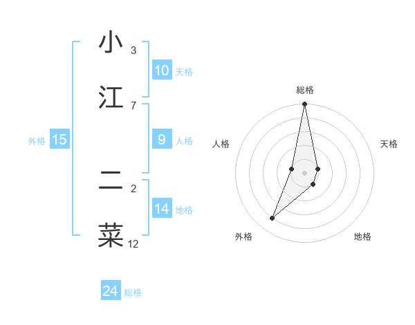 小江 二菜さんの総格は24画の5点!