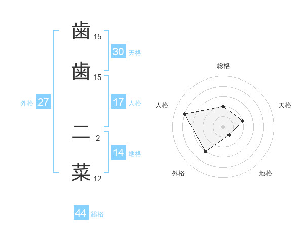 歯歯 二菜さんの総格は44画の2点