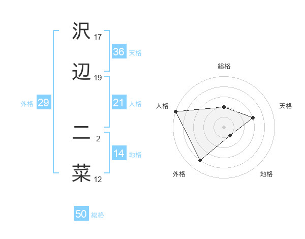 沢辺 二菜さんを姓名の画数から五運を鑑定