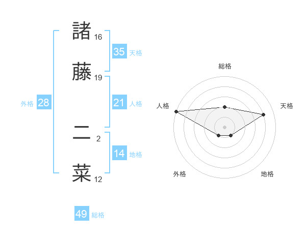 諸藤 二菜さんの総格は49画の2点!