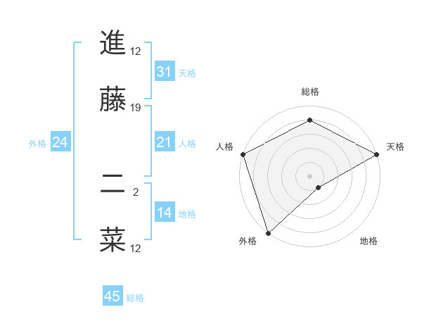 進藤 二菜さんの総格は45画の4点!