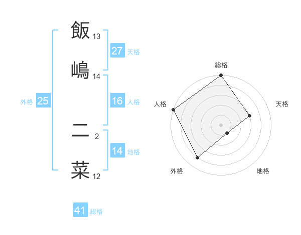 飯嶋 二菜さんを姓名の画数から五運を鑑定