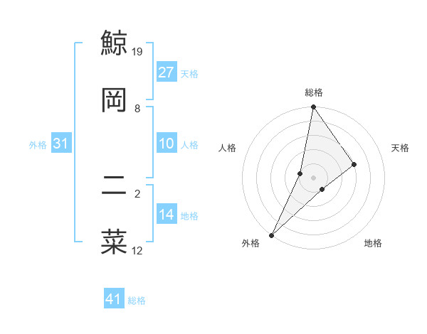 鯨岡 二菜さんの外格は31画の5点!