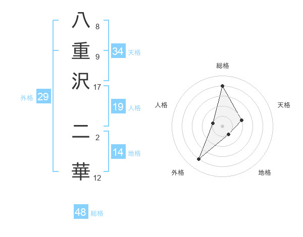 八重沢 二華さんを姓名の画数から五運を鑑定