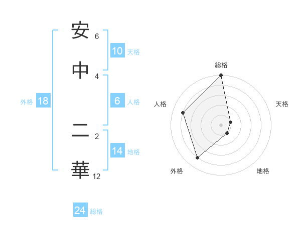 安中 二華さんの総格は24画の5点