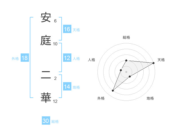 安庭 二華さんの総格は30画の2点!