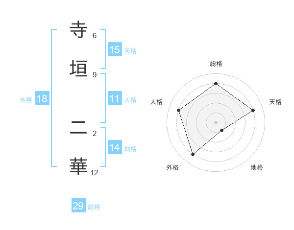 寺垣 二華さんの総格は29画の4点!