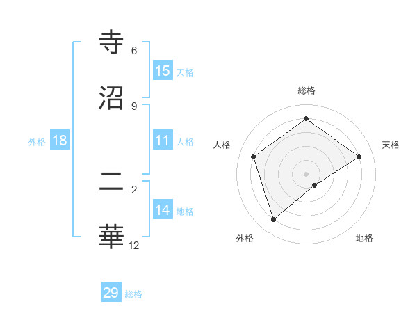 寺沼 二華さんの総格は29画の4点!