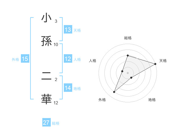 小孫 二華さんの天格は13画の5点!
