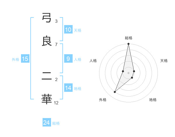 弓良 二華さんの総格は24画の5点!