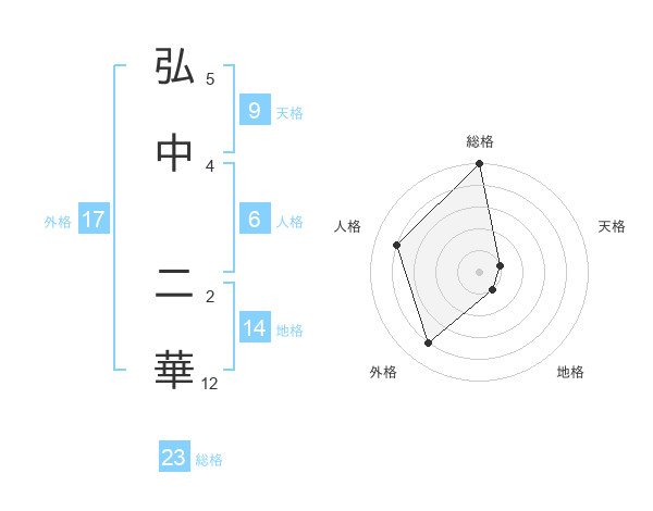 弘中 二華さんの総格は23画の5点