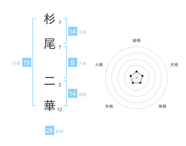 杉尾 二華さんの天格は14画の1点!