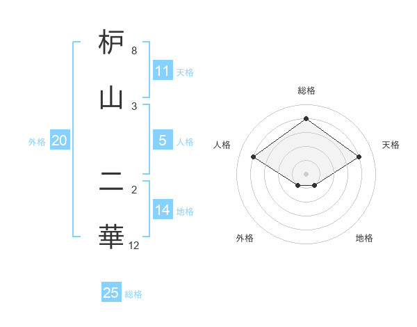 枦山 二華さんの総格は25画の4点!