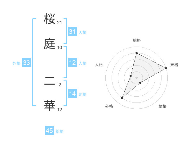 桜庭 二華さんを姓名の画数から五運を鑑定