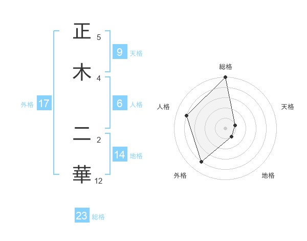 正木 二華さんの総格は23画の5点!