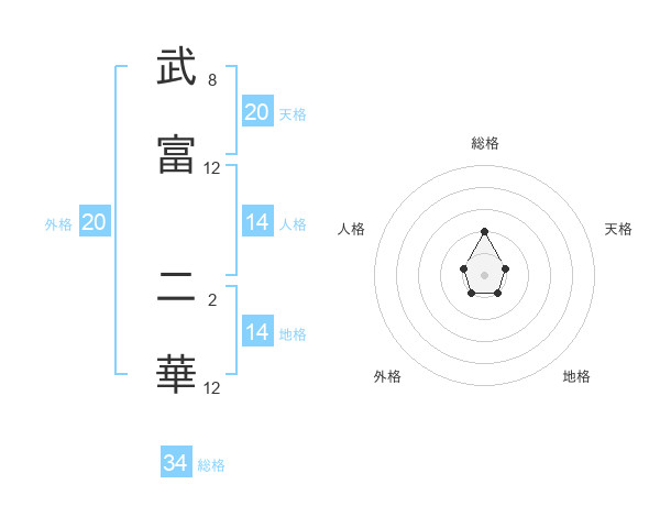 武富 二華さんを姓名の画数から五運を鑑定