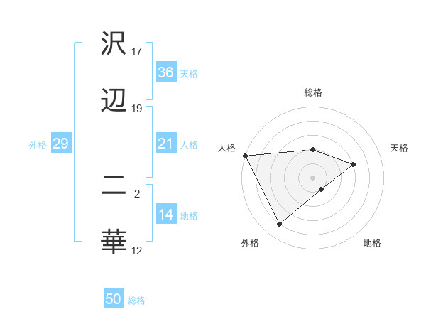 沢辺 二華さんを姓名の画数から五運を鑑定