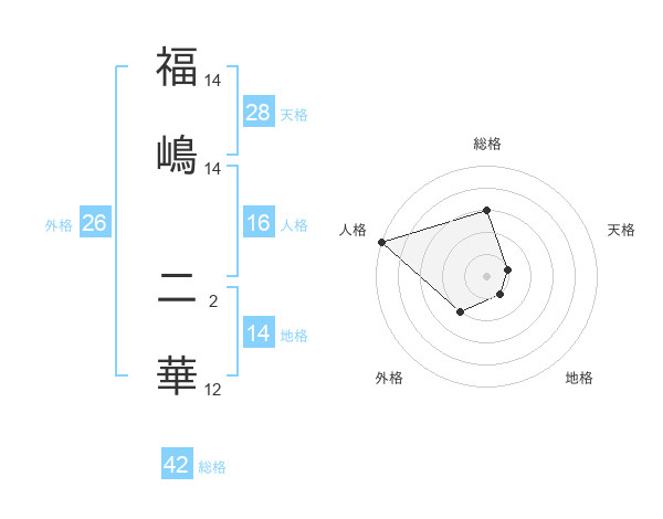 福嶋 二華さんの天格は28画の1点!