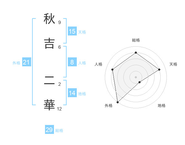 秋吉 二華さんを姓名の画数から五運を鑑定