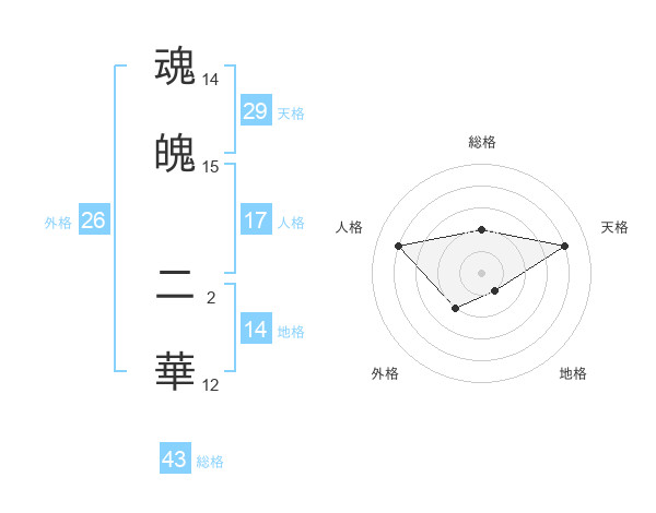 魂魄 二華さんを姓名の画数から五運を鑑定