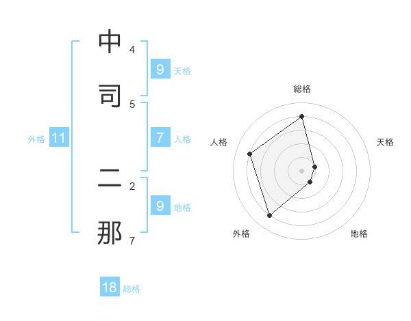 中司 二那さんの総格は18画の4点!