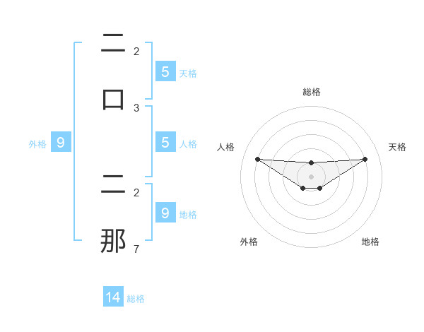 二口 二那さんの天格は5画の4点