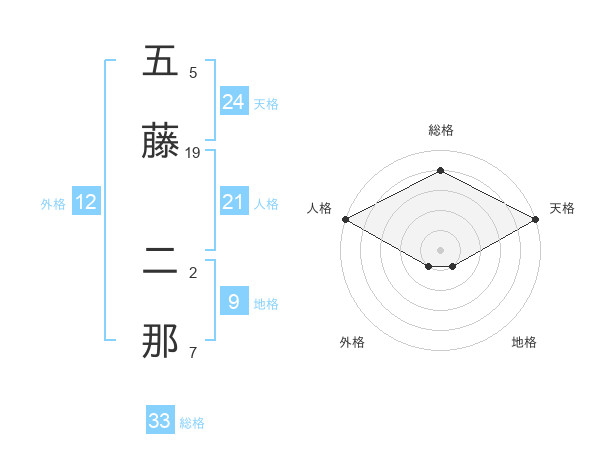 五藤 二那さんの天格は24画の5点!