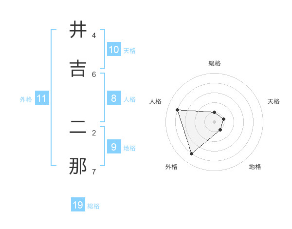 井吉 二那さんの天格は10画の1点!