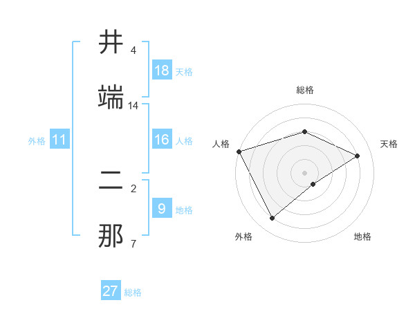 井端 二那さんの天格は18画の4点!