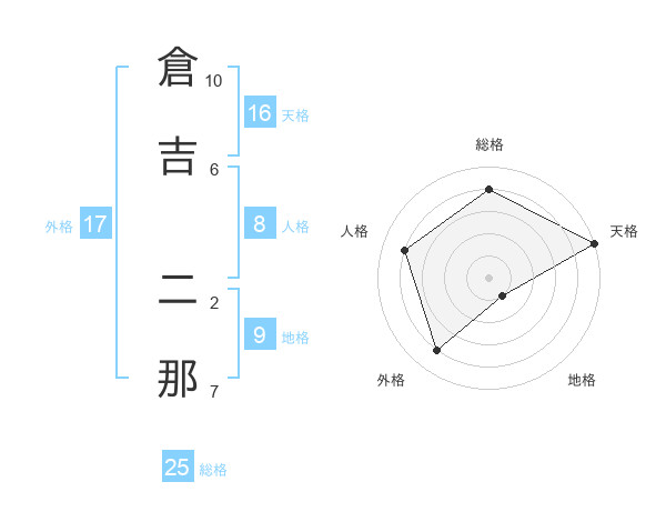 倉吉 二那さんを姓名の画数から五運を鑑定