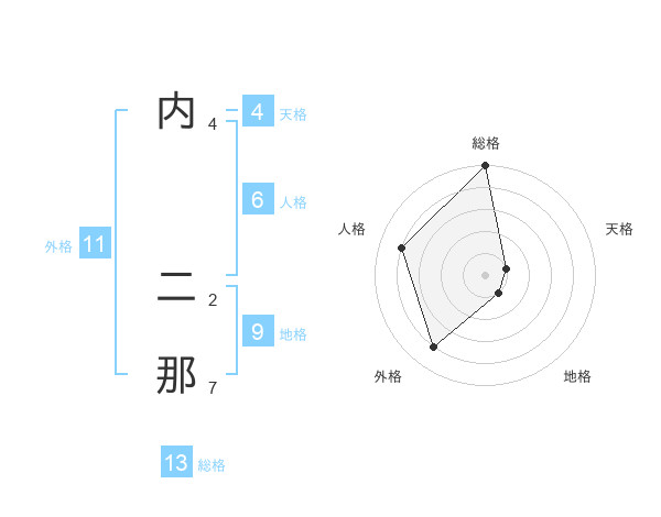 内 二那さんの総格は13画の5点!