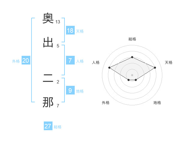 奥出 二那さんの天格は18画の4点!