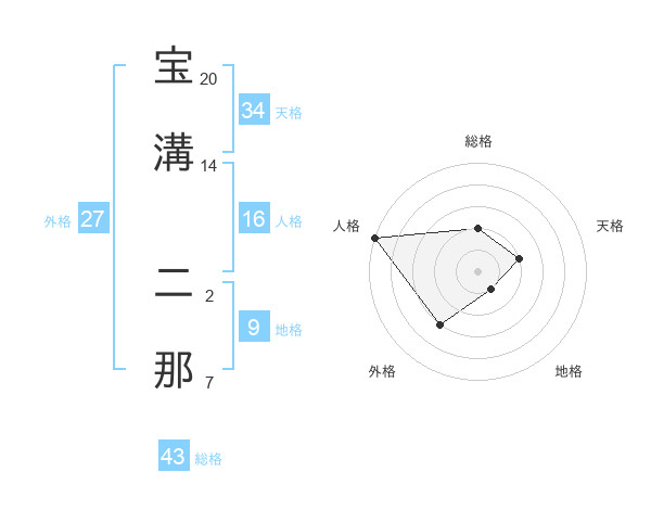 宝溝 二那さんの総格は43画の2点!