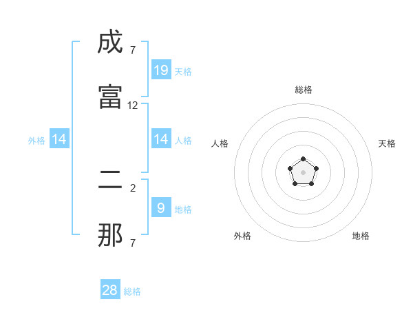 成富 二那さんの総格は28画の1点!