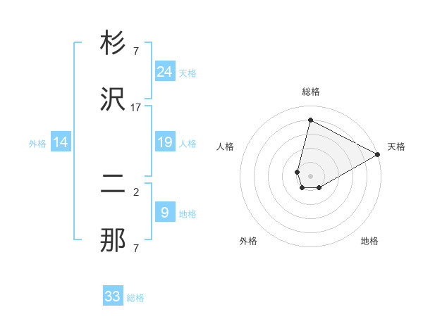 杉沢 二那さんを姓名の画数から五運を鑑定