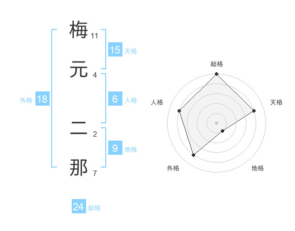 梅元 二那さんの総格は24画の5点!