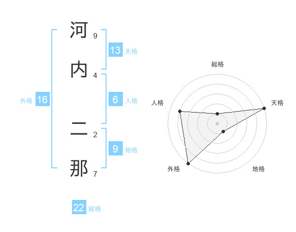 河内 二那さんの天格は13画の5点!