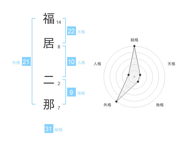 福居 二那さんの外格は21画の5点!