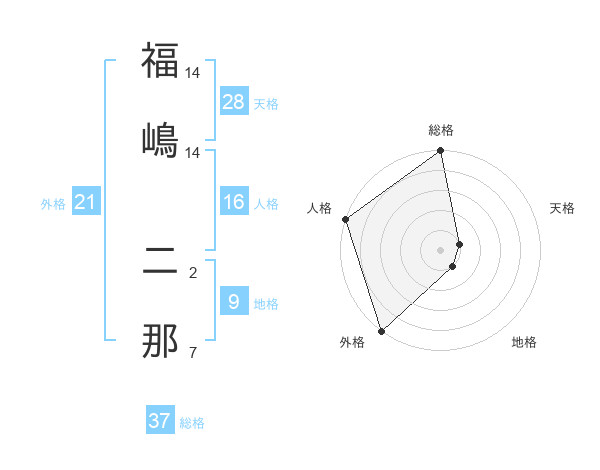 福嶋 二那さんを姓名の画数から五運を鑑定