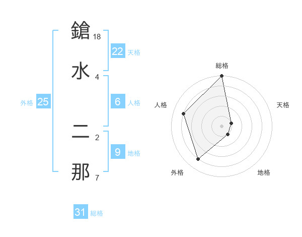 鎗水 二那さんの総格は31画の5点!
