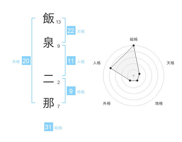 飯泉 二那さんの総格は31画の5点!