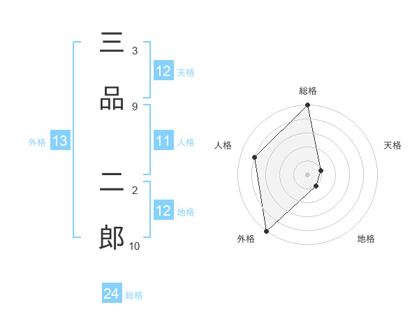 三品 二郎さんの総格は24画の5点!