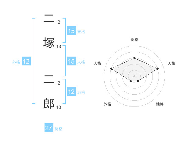 二塚 二郎さんを姓名の画数から五運を鑑定