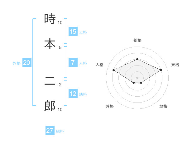 時本 二郎さんの総格は27画の3点!