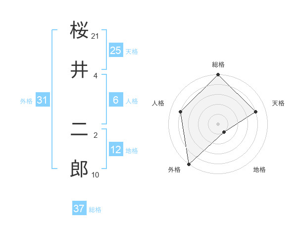 桜井 二郎さんを姓名の画数から五運を鑑定